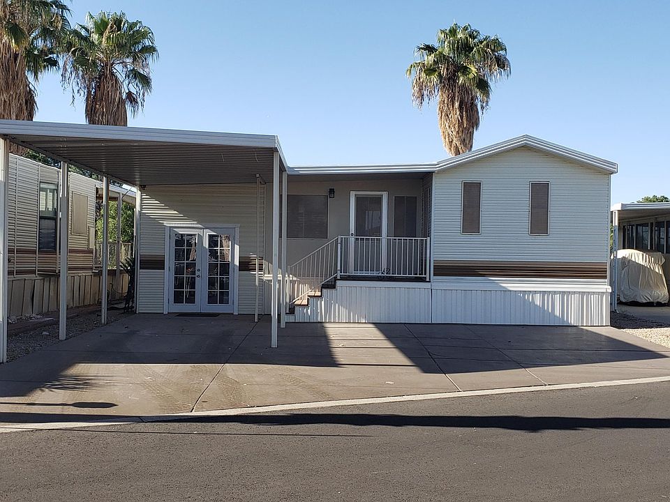 Golf Course Beauty with breath-taking views of the White Tank Mountains, Fountain, Sunsets & MORE! Over 790 Sq Ft 1 Bed/1 Bath. The Arizona room is currently used as a huge family room, perfect for entertaining while looking over the 17th fairway. The park model has a dining area, kitchen, bath and bedroom and... the bedroom is in front leaving the dining area with VIEWS! Lots of room for storage and relaxing in this home. The new rear deck is covered, step down to a patio area. Appliances. drywall, doors, light fixtures, ceiling fans, carpet, flooring, paint, bathroom vanity & toilet home skirting, deck replaced in 2019. So much to see. Make an offer today!!!