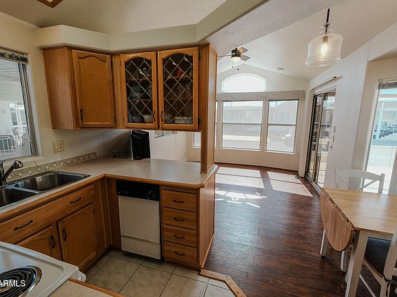 Own your lot—no rent, low HOA fees, and a lifestyle that feels like vacation. This partially furnished Park Model (with kitchen items) makes it easy to enjoy Arizona living: sip coffee on your spacious deck, harvest tangelos and limes from your own trees, or take a golf cart ride with friends. Inside you'll find a step-in shower, dishwasher, updated appliances (2018 range), and laminate/tile flooring. The insulated shed with updated flooring & stack W/D adds convenience, while major updates—newer roof, 2017 heat pump, irrigation & newer plants—bring peace of mind. Covered parking keeps your car and cart cool. At Happy Trails you'll find pickleball, pools, spas, clubs, and endless activities in a vibrant 55+ community where neighbors become friends and every day truly feels like vacation.
