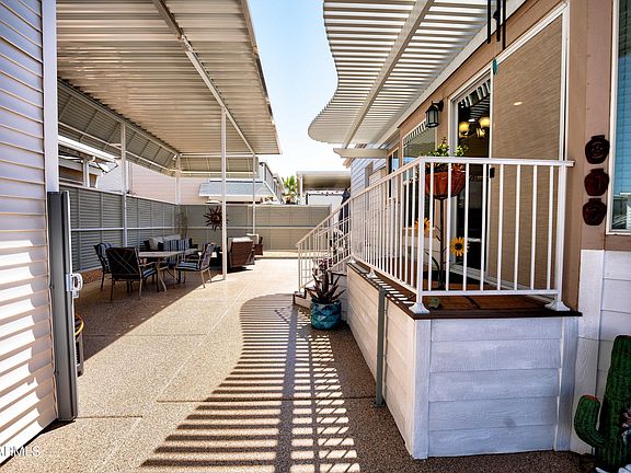 A beautiful furnished Park Model with 1 bedroom and 3/4 bathroom built in 2015 awaits you! Inside you will find linoleum tile throughout. The kitchen boasts beautiful cabinetry with modern hardware, laminate countertops and matching white appliances. The bedroom is large enough to fit the queen size bed that comes with the home. The Bathroom has been updated with a new toilet and faucet. You are sure to enjoy long nights out in the big seating area newer epoxy coating just installed in 2020! There is also a privacy screen and an extended awning for more shade! The storage shed is well insulated with extra attic space to store all your belongings plus a dryer. Come and be a part of the Happy Trails Community with the many amenities, clubs, and sports that is offered!