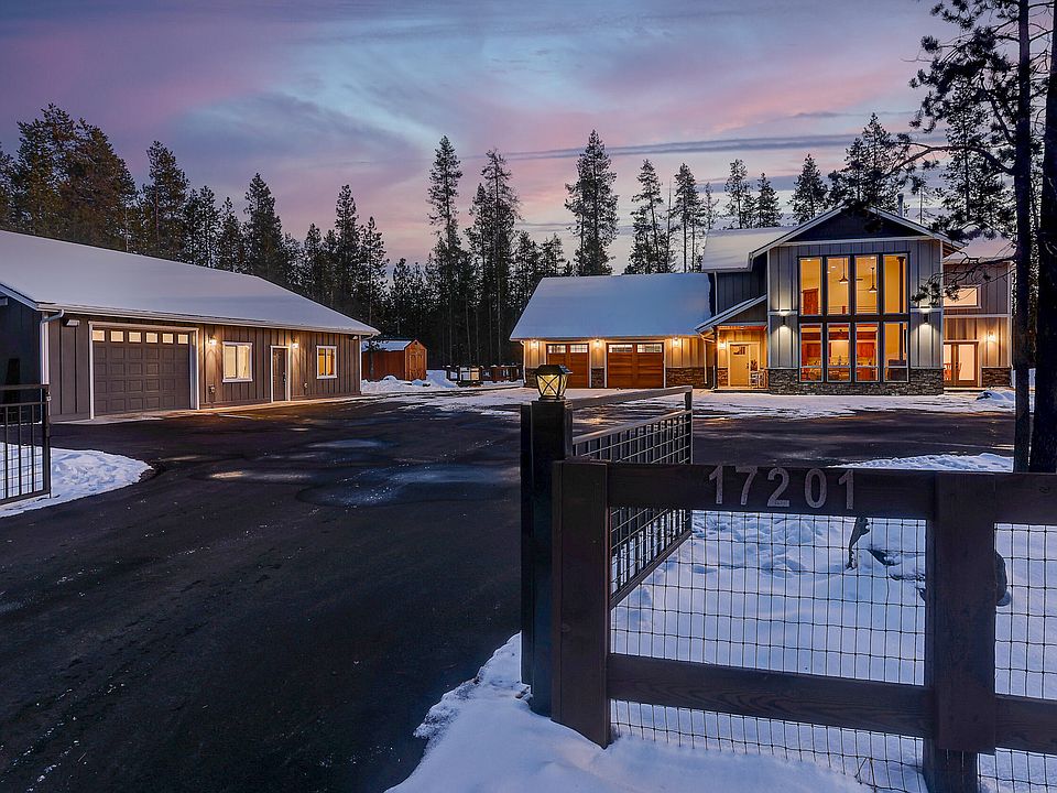 Stunning meticulously maintained newer home w/ large shop that sits on nearly an acre, located 2 miles South of Sunriver & 20 minutes to Mt. Bachelor. 20 ft high ceilings in the great room present a wow factor as soon as you walk in. Everything has been overbuilt w/ the highest quality finishes, a must-see home! Natural light pours in through the numerous windows which highlight the warm hickory wood flooring. The kitchen features a large island w/ quartz counters, Viking appliances & wood cabinets. In addition to the attached 2-car garage, there is a 1,920 sqft shop w/ wood stove heating to store all your toys. The shop has a 600 sqft office wired for cable/internet & has heating/cooling. Custom perimeter fence w/ a gate & landscaped w/ drip system. Other features include 2 RV connections w/ 50 amp power, wired for hot tub, 2 firepits on the paver patios, well pumphouse is drywalled & insulated. The main house is wired for generator backup. This is a truly spectacular home & property!