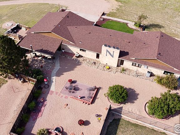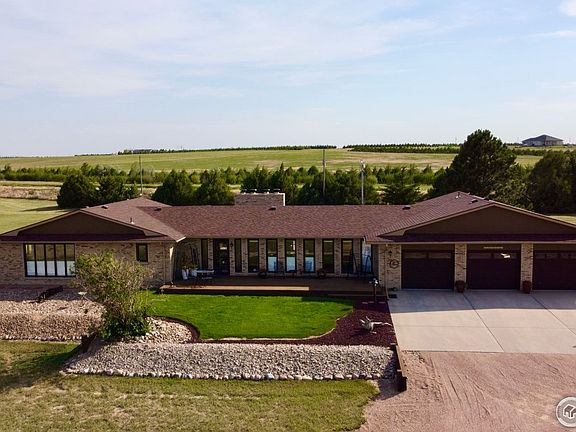 Home, home on the range...all brick ranch style home situated on 14 acres approximately 7 miles north of Sterling. Home boasts large master suite, walk-in closet, plus 2 additional bedrooms on the main level. Open concept living, dining room and kitchen. Newer wood laminate in living areas, custom rock fireplace with wood burning insert. Finished basement includes the pool table, brick wood burning fireplace, and 1/2 bath. Enjoy sunrises and sunsets from the wood deck out front, and large covered patio in the fenced backyard. Your vehicles will store well in the attached 3 car garage with separate work shop. Exceptional views, with plenty of parking for RV's, boats and close to North Sterling Reservoir