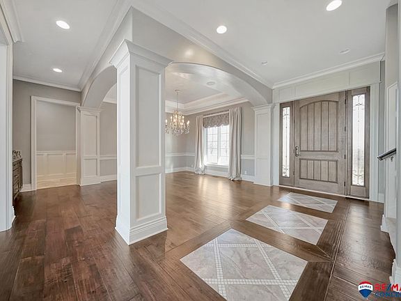 South Lincoln 5.95 acreage paradise. This spectacular masterpiece is in Norris School District, minutes away from Southpointe Mall, and with quick access to downtown Lincoln. From the moment you drive on the circle driveway, there is a grand approach with a breathtaking entry. This home has formal & informal dining, family area, and the kitchen is designed to maximize the family time together, with a chef's stove, beautiful custom cabinets and granite countertops. This 7,100+ sq ft home sparkles with a grand fireplace and copper ceiling. The master suite has heated floors, grand walk-in closet with washer/dryer. Upstairs has 3 grand sized bedrooms with baths. This home has an entertaining area with full kitchen/wet bar, Premium Home Theater system, plus bonus living room, kiddie playroom and walkout basement.