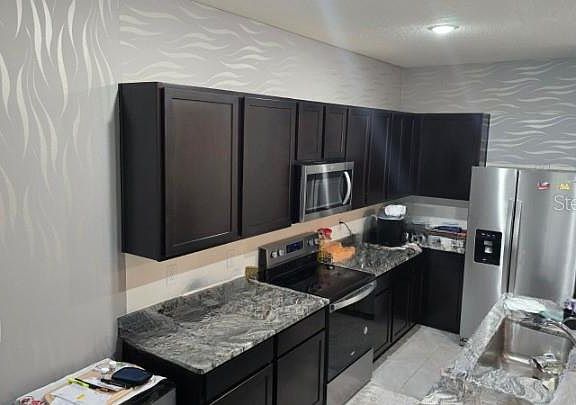 This charming two-story townhome boasts solid all-concrete block construction and an open-concept layout. The first floor features a spacious kitchen with ample counter space, a convenient powder room, and a large family room that opens onto a covered lanai—perfect for enjoying the outdoors or entertaining guests. Upstairs, you’ll find a roomy primary suite with its own en-suite bathroom, two additional bedrooms, a full bathroom, and a separate laundry area. Ready for immediate move-in, this home comes complete with all appliances, including a refrigerator, built-in dishwasher, electric range, microwave, washer, and dryer.