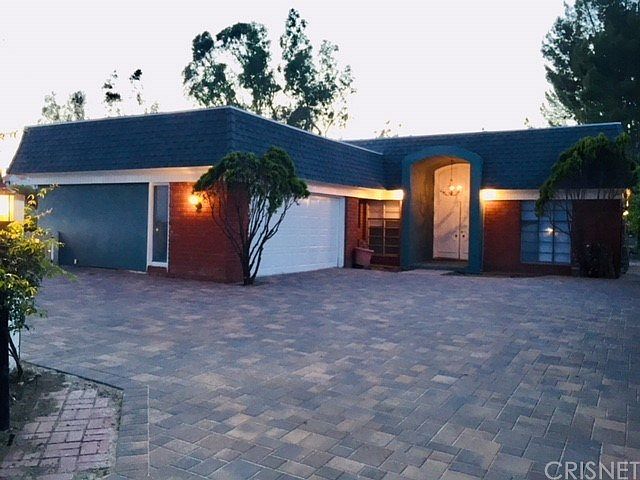 Midcentury Modern, (with all new appliances, roof, drive, fabulous view etc). Gated one story at the end of a very private street. Quiet and peaceful cul-de-sac. AMAZING views of the valley. MUST BE SEEN AT NIGHT! Stunning sunsets and city light views! Paver driveway leads to the freshly painted exterior. Inside you will find over 2500 square feet with hardwood floors, new carpet and open, bright and airy one story. 3 bedrooms and 2.5 baths. Spacious living room highlighted by two sided fireplace with floor to ceiling windows overlooking the San Fernando Valley. Formal dining room. Updated kitchen with crisp white cabinets and granite counters. Family room with wet bar and fireplace as well as sliding glass doors leading to rear patio with pavers. Master suite with sitting room, walk in closet + 3 more closets! Private bath with separate tub and shower. The other 2 bedrooms share a bath. Drought tolerant yard with sprawling patio and wood viewing deck. Did I say amazing views?!