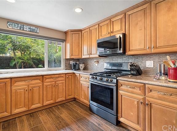 Lovely substantially upgraded home in one of the most desirable neighborhoods in Cerritos. Double door entry with marble floor foyer leads you to formal step-down living room, as well as a spacious family room with fireplace and cathedral beamed ceiling overlooking the remodeled kitchen complete with soft-close drawers, refrigerator, dishwasher, built-in microwave, gas stove, granite counters, tile backsplash, and a breakfast bar! Open and close the power window shades in kitchen and dining room with the touch of a button. Central air/heat, dual pane windows throughout, recessed lighting, fireplace, whole house water softener, and newer carpeting and wood-grain ceramic tile flooring on first floor. Master bedroom suite is on the main floor, and the upstairs boasts two more bedrooms and a bathroom, and a loft to be used as an office or play area, including a doorway to easy-access attic storage. The backyard is enclosed with a privacy block wall, newer sidewalk on one side, a BBQ island, and a covered patio for year-round al fresco dining. The garage has direct access to the home, as well as ample space for additional cabinetry which conveys, as well as laundry with washer and gas dryer that stays, and a roll-up garage door. Less than one mile to Cerritos Town Center, the Performing Arts Center, Cerritos Park East, and walking distance to Whitney High School (one of the top ranked high schools in California) and other award-winning schools, and close to major Freeways 91, 5, and 605. Location, location, location! Don't hesitate on this turnkey family home in one of the best areas around!!