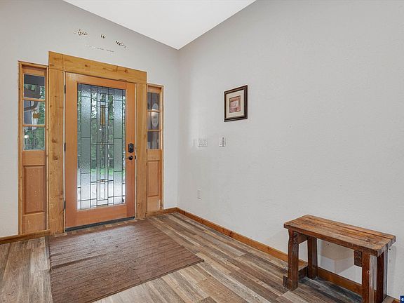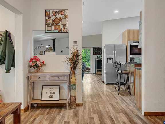 Gated property with an exceptional view. This one-level home is set up to be your forever home. 48 x 36 shop with a 16 ft door to store your RV and all your toys. The shop has finished office space perfect for an art studio or work-from-home space. 36 x 24 barn set up for livestock, complete with a hay storage loft above. Property is cross-fenced for easy management. Covered outdoor living space capitalizes on the year-round view of the valley. This is an exceptional hobby farm.