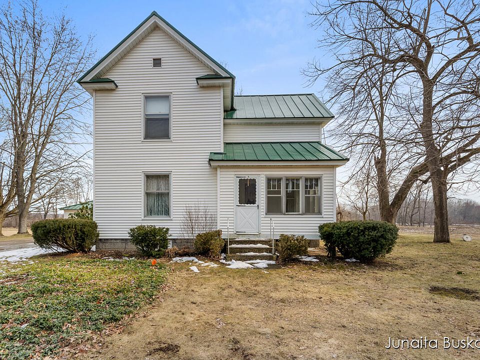 Nestled on 10 acres, this house boasts a serene open field, bordered by trees. This 2 story home has 4 bedrooms and 1 bathroom. A 2-car detached garage and a metal roof ensure durability. There are 2 enclosed porches, one in the front and one in the back. While the vast potential promises endless possibilities. Enjoy country living with ample space to roam and unwind. Listed is approximate property dimensions.