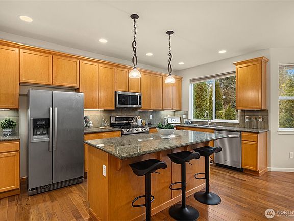 Experience the perfect blend of comfort and convenience in this meticulously maintained 4-bedroom, 2.5-bath home in Park at Creekside. Freshly painted interior and a brand-new roof installed! This two-story gem features vaulted ceilings, a versatile main-floor den or 5th bedroom, a formal dining room, and an open-concept kitchen seamlessly flowing into the inviting family room. Upstairs, retreat to the expansive primary suite with a luxurious 5-piece bath. Three generously sized bedrooms, a full bathroom, a laundry room, and a bright, airy living room complete the second floor. Just steps from the community park, picnic area, sports court, and scenic trails. Situated in the highly sought-after Northshore School District. Pre-inspected!