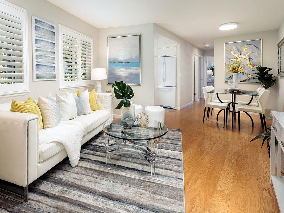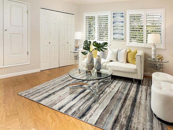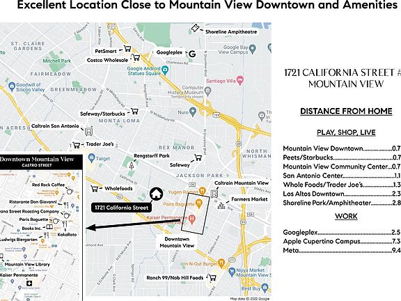 Best Value in Mountain View - New Price!! Fabulous, remodeled 2-Bedroom ground floor condo close to Mountain View Downtown. Desirable, gated California Court condo community. Open floor plan with seamless flow between living, dining and kitchen. Modern kitchen with white cabinets, garden window, and glass tiles to the ceiling. Primary bedroom has direct access to a beautifully designed white bathroom with mosaic accents. Second bedroom opens to an outdoor patio. Stylish half bath with floating vanity. Dual pane windows, plantation shutters, engineered redwood floors. Convenient inside laundry. Secured building with elevator and two assigned parking spaces - one underground and one outdoors. Fenced extra storage near parking. HOA includes water, garbage, HOA pool, bike shed, gated building/parking, and more! Excellent location super convenient to Google, vibrant Downtown Mountain View, Shoreline, Whole Foods, Trader Joes, San Antonio Shopping Center, Farmers Market and Caltrain