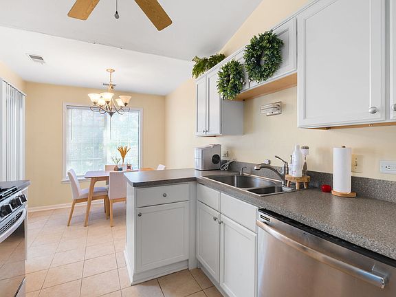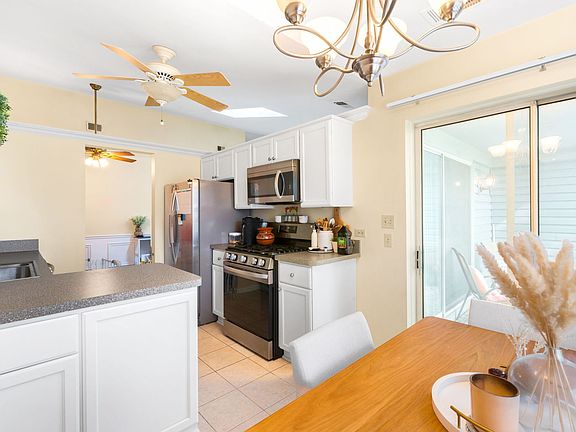 Move right in to this well-kept home that has been lovingly maintained by the tenants and owner. The kitchen offers room for a table and flows into the dining area, perfect for entertaining and extra seating. You can step out to the balcony from either the kitchen or the living room for fresh air and relaxation. In the winter, enjoy the cozy gas log fireplace, while skylights and vaulted ceilings fill the space with natural light and create an airy, open feel. The spacious primary bedroom features a walk-in closet, and the second bedroom is nicely sized as well. Additional highlights include stainless steel kitchen appliances, white cabinetry, like-new carpet, ceiling fans, a separate laundry room adding convenience and function and the convenience of a private garage.