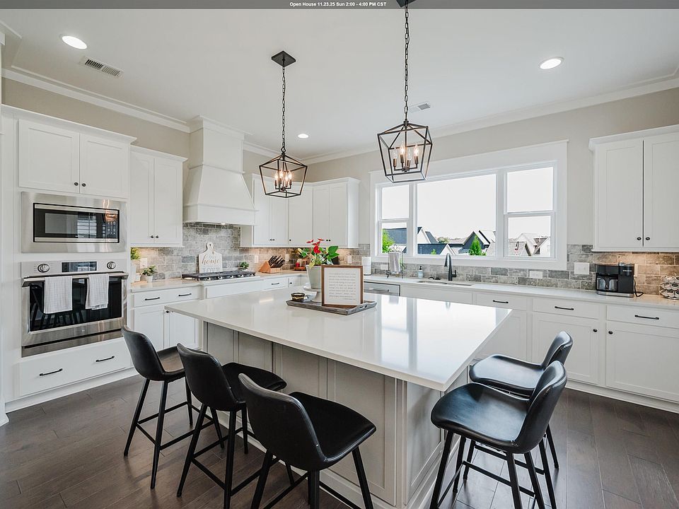 Perched on a spacious hilltop lot with green space next door for added privacy, this beautiful home blends luxury, comfort, and style. Inside, you’ll love the open-concept layout featuring soaring ceilings, custom built-in cabinetry, and a striking gas fireplace that creates a cozy ambiance for fall and winter evenings. The chef’s kitchen is a showstopper—offering breathtaking views from its elevated setting and the perfect backdrop for both everyday living and entertaining. Step outside to the backyard with an extended patio, ideal for hosting gatherings around the outdoor wood-burning fireplace. Additional highlights include an extended main garage with a built-in storm shelter for peace of mind, plus a third-car garage for extra space or storage. Enjoy resort-style living with community amenities such as a Pool, Clubhouse, Fitness Center, Lake access, Walking and Biking Trails, Pickleball Courts, and Playgrounds—all just minutes from top-rated shops and restaurants.