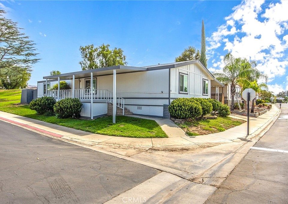 CHECK OUT THE NEW PICTURES!!!!!!!!!!!!!!!!!!!!SPECTACULAR HOME! Beautiful curb appeal on a spacious inside corner lot, three bedrooms, divided on each end of home, two full bathrooms, one with a gorgeous soaking sunken tub, h-u-g-e walk-in closet in Primary Bedroom, adjacent to spacious primary bathroom. NEW plumbing throughout in 2021, NEWLY painted exterior, NEW Windows and a NEW exterior fence in 2023. This lovely home INCLUDES ALL APPLIANCES: free-standing range/oven with range hood, dishwasher, disposal, refrigerator, microwave, washer & dryer! One of the Best features is the sprawling raised side covered deck, with magnificent views of the surrounding mountains. A REDLANDS ALL-AGE COMMUNITY, close to shopping, medical facilities, schools, banking and more. (Ser#VN02235A/B) Space rent approximately $1300.00/month, utilities extra. Write your Offer TODAY!