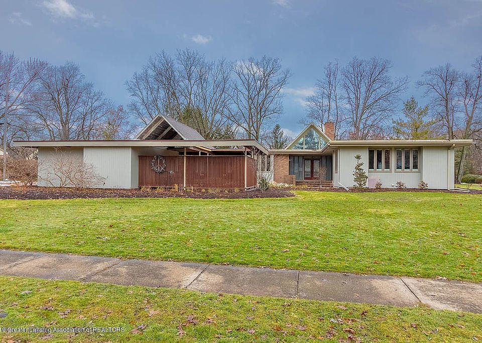 This 4-bedroom 2.5 bath ranch home is a Mid-Century gem on a large private lot in a fabulous location, designed by renowned architect Chan/Rader, as featured in Better Homes & Garden circa 1962. A spacious living room with Cathedral ceiling and bamboo flooring features a gas fireplace with floor to ceiling marble. Newer Pella sliders and extra long casement windows throughout bring the outdoors in and allow access to a deluxe hot tub. The reimagined open plan kitchen has granite tops, cherry cabinets, high end stainless appliances, a walk-in pantry, and is open to the breakfast area, dining and family rooms. The family room with a 2nd fireplace has abundant built-in cabinetry and bamboo flooring, providing additional space to entertain. Over-sized sliders lead to another of the four brick patios and a professionally landscaped and fenced yard. The serene master suite boasts hardwood flooring, vast closet space, ensuite bath and dressing area. Three more bedrooms (2 with cork flooring), another 1-1/2 baths and a convenient 1st floor laundry complete the main floor layout. Truly a special home, it has had many updates in the last year including $35k worth of landscaping. Please see inserts for updates.