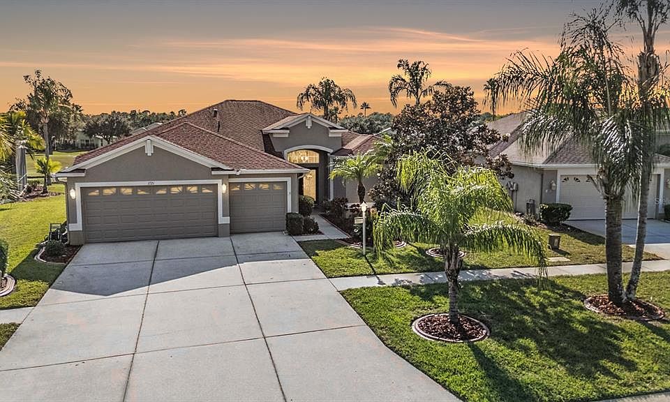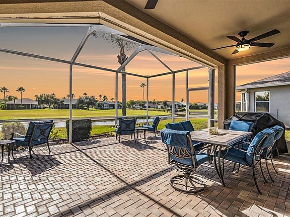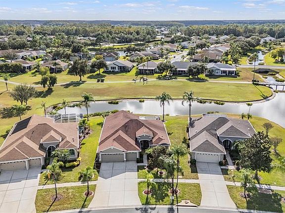 Postcard-Perfect Views and Rare 3-Car Garage! HVAC REPLACED 2024; ROOF REPLACED 2014. Discover the perfect blend of elegance, comfort, and Florida living in this beautifully maintained Village home—complete with a rare three-car garage and breathtaking postcard views of the pond and golf course! Step inside to a bright and open floor plan featuring high ceilings, a neutral color palette, arched designer details, and plantation shutters throughout. The spacious living and dining areas welcome natural light all day, creating a warm and inviting atmosphere. The large kitchen is a cook’s delight with abundant counter and cabinet space, stone countertops, a breakfast bar, and a charming eat-in area that opens directly to the lanai. Enjoy seamless indoor-outdoor living as the family room also captures the stunning golf and water views, offering easy access to the oversized, pavered lanai—all enclosed within a big birdcage for year-round enjoyment. With three bedrooms and two full baths, this home offers flexibility to suit your lifestyle—the third bedroom is ideal as a home office, den, or guest retreat. Beautifully designed and perfectly maintained, this home delivers resort-style living with a view you’ll never tire of. 55 & FUN - LIVE THE HERITAGE SPRINGS LIFESTYLE - Resort style living at its absolute finest! Clubhouse with restaurant and bar, fitness, tennis, golf, cards, billiards, dancing and more! SUPERB TRINITY LOCATION, CLOSE TO BEACHES, DINING, SHOPPING, MEDICAL AND AIRPORT! Caution - Adults at Play!