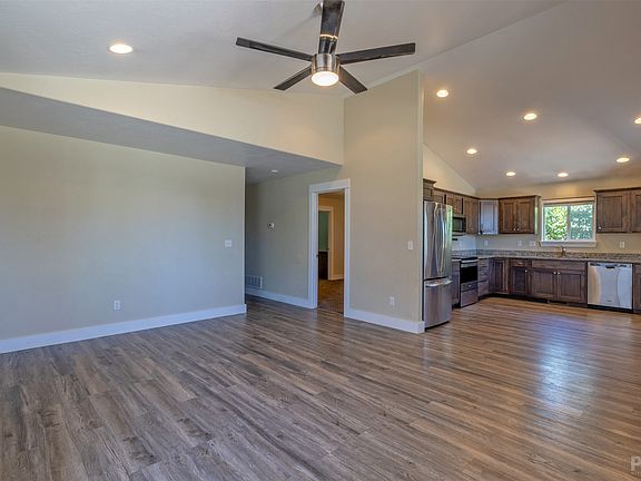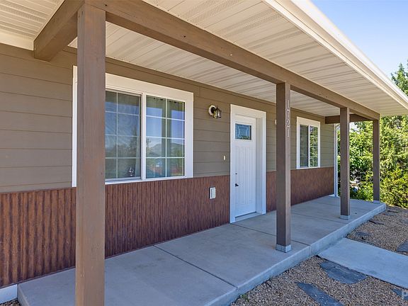 Like-new single level ranch-style bungalow with charming covered front porch conveniently located in Helena's "lower west" neighborhood. Great proximity to Spring Meadow Lake, Green Meadow Country Club, Barney Park, and Centennial trail! Built in 2017 by Werner, the quality is evident, the condition is excellent, and the property is low maintenance inside & out. The floor plan features 3 bedrooms & 2 baths, including a spacious primary suite with walk-in closet. Kitchen has ample workspace, rich wood cabinets, and granite countertops; living/dining room is open and feels bright and airy with vaulted ceilings and large windows. LVP/laminate flooring in kitchen/dining/living/hallway; carpet in bedrooms. Detached double garage has alley access, and the lot has a