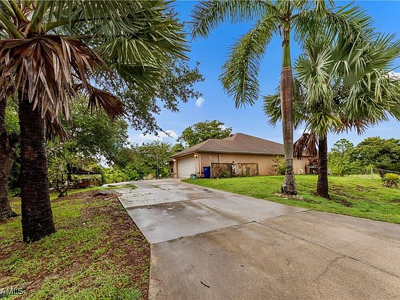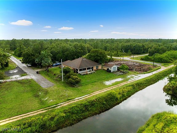 Welcome to this OVER 2,000 sq ft 3/3 + a 16 by 20 climate controlled detached building with bathroom nestled away on an oversized 4ft FENCED property of a quiet DEAD END street aside canal. This grand floor plan with tray & cathedral ceilings spotlights an attractive tiled breakfast bar with GRANITE countertops & newer STAINLESS STEEL applainces including double oven, impressive shaker cabinetry, spacious master with desirable dual sink vanity & WALK-IN closet, and an enormous 31 by 9 ft screened back patio great for entertaining. It also highlights big bay windows, hurricane shutters, large laundry room under air, window treatments, and premium fixtures. This peaceful property with mature landscaping is just minutes to all major amenities & a quick commute to Fort Myers. Schedule your showing today!