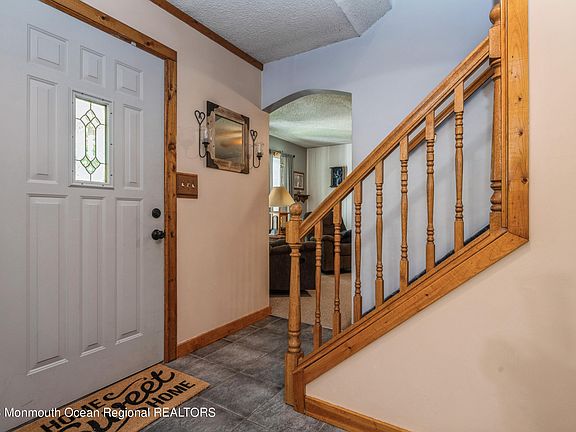 This 5-bedroom, 3-bathroom colonial-style home is situated on a spacious acre of land, offering a serene setting backed against the woods. The front of the house features an inviting oversized porch with recessed lighting, creating a charming first impression. Inside, the den on the left boasts a cozy wood-burning fireplace which could be transformed into a bedroom. There is a convenient mudroom/pantry area coming in from the oversized garage that has plenty of space for two cars and a workshop. The kitchen and dining room are separated by a half wall, providing an ideal layout for entertaining. The fifth bedroom can easily be converted into a home office, perfect for the days you work from home. The backyard showcases a deck with a delightful trellis, attracting hummingbirds with trumpet flowers. The in-ground pool boasts a relatively new liner, only 4 years old. The basement and attic offer ample storage space. This home is perfect for a growing family or extended family. Book a showing today!