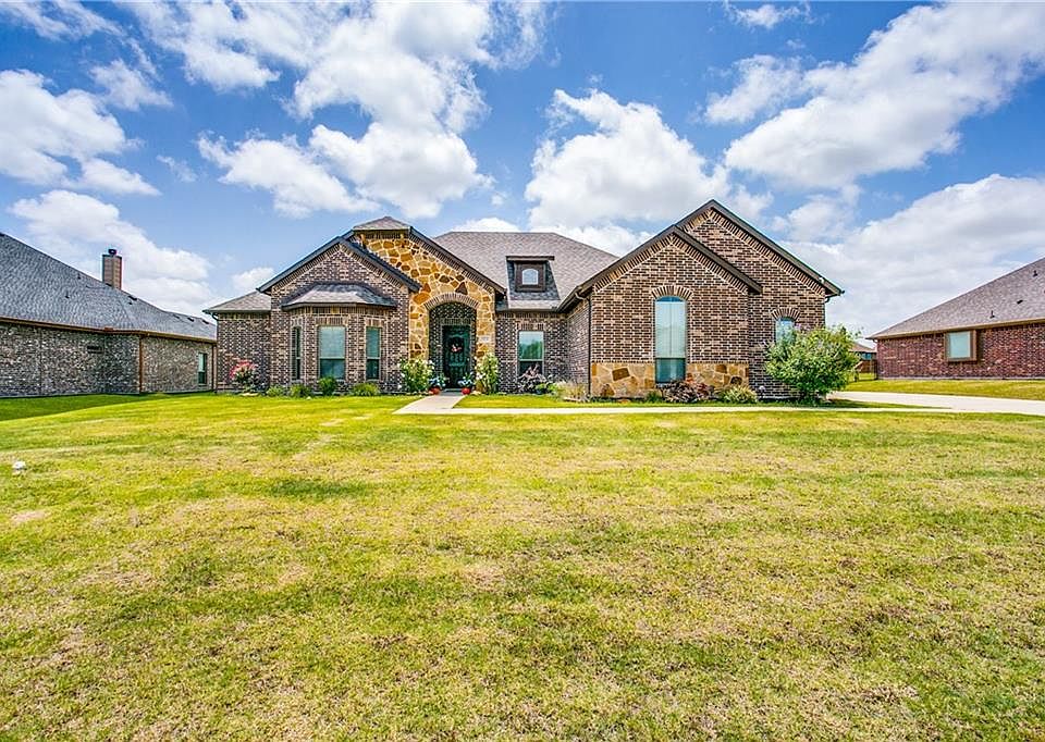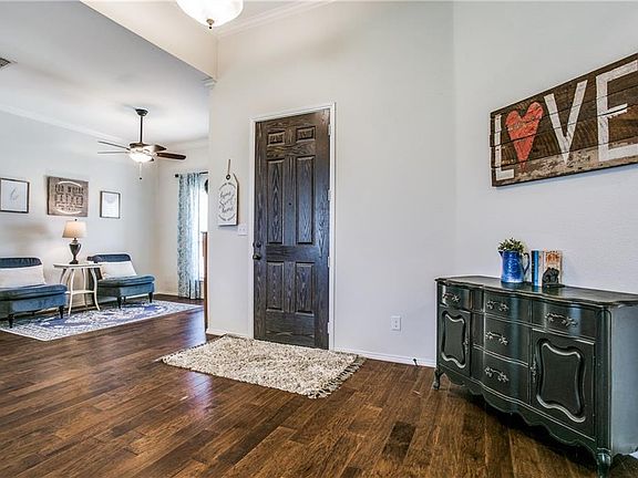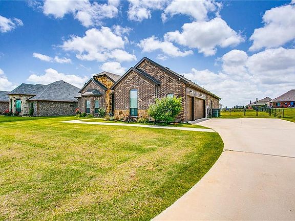 Beautiful 4 bedroom 2 bath 3 car home on a half acre by Robbie Hale Homes! Open floor plan featuring engineered hardwoods, crown molding, 2 inch blinds and gutters on front, side and back! Kitchen with large island, lots of cabinets, granite countertops, single bowl stainless sink, stainless steel appliances with microwave, oven and glass cooktop. Master bedroom with large bathroom including a huge walk in shower with double shower heads, jetted tub, separate square sinks, and spacious walk in closet. Secondary bedrooms have walk-in closets. Oversized utility room with cabinets and sink! Plenty of space on this covered patio for entertaining overlooking a fully sodded and fenced backyard! Room for a pool!!!
