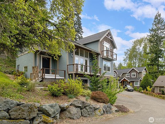 Discover your new home tucked away on St. Paul Ln; this stunning property offers sweeping territorial and mountain views, all while being just moments from Whole Foods, shops, and trails like Salmon Creek, Samish Crest, and Whatcom Falls. Ethereal natural light pours into every room, with soaring double-height ceilings and skylights in the main living space. The spacious design includes a striking primary suite with towering vaulted ceilings, updated appliances, and a large two-car garage with extra storage for hobbies.