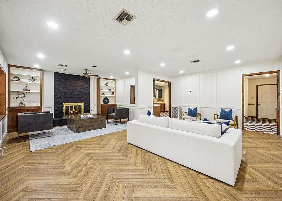 This timeless Oak Forest home offers space, charm, and functionality! With 3 bedrooms, 2 bathrooms, and one of the most spacious floor plans in its price range, 1721 Saxon stands out from the rest! A large, light-filled kitchen flows into two inviting living areas, including a stylish den with built-ins, sophisticated paneling, and a wood-burning fireplace. The primary bedroom is ideal with an en suite bathroom and large walk-in closet. The oversized 2-car garage is a rare find, offering exceptional storage and versatility. Outdoors, a generous yard shaded by mature trees provides the perfect setting to enjoy. Walking-distance to parks, trails, and nestled in a beloved neighborhood, this property combines character and comfort in an unbeatable location. Easy access to major freeways, but tucked back in a private neighborhood away from road noise. Never flooded! Welcome home!