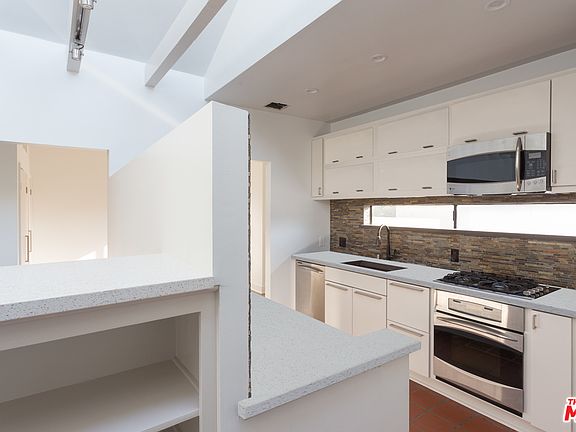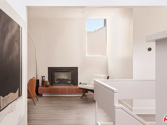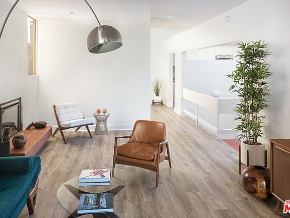 Donald Aris Peart, Architect, 1967 Rare mid-century 4 unit building. Ascend a flight of stairs to a post and beam atrium with clerestory windows, soaring ceilings, with abundant natural light. Be the first to live in this newly renovated two bedroom/two bath modernist sanctuary. Tranquil with a park like view, the apartment consists of a large living room with fireplace, dining room with adjoining outdoor patio, spacious windowed kitchen, new washer & dryer, Nest system (new Heating and AC) and 2 car parking. Desirably located near markets, movie theaters, public transportation, UCLA, the Hammer Museum, and Eataly in Century City!