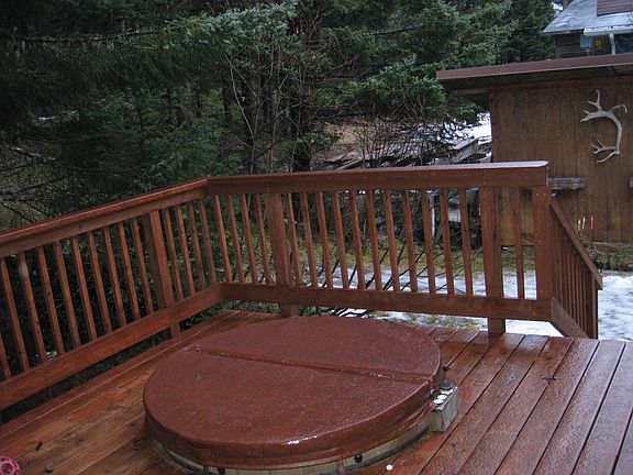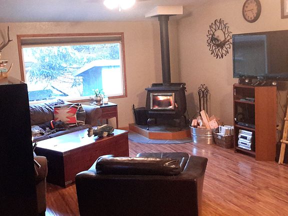 Beautiful home on Large city lot, located within city limits close to Safeway and schools. This home has a feel of seclusion with a nice wooded lot and good sun exposure. Has a covered front deck, rear deck with hot tub, large exterior banya (sauna) with a change room, new bathroom fixtures, new laminate wood flooring, new blaze king wood stove, and updated new windows. 4+ star energy rating done in 2014. All the benefits of living in the woods with several trails right out your back door, with the convenience and amenities of living in the city. Pre-approval please.