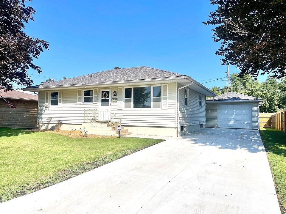 This is perfection. Lovey completely remodeled 3-bedroom home. Living room with hardwood floors open to beautiful kitchen with double sink, quartz countertop, new cabinets, and all new stainless-steel appliances. All new windows except living room picture window. New central air conditioner. Driveway concrete new. Fenced in yard. One car detached garage with additional room for extra storage or entertaining. Neat and clean basement with washer/dryer hook-up.