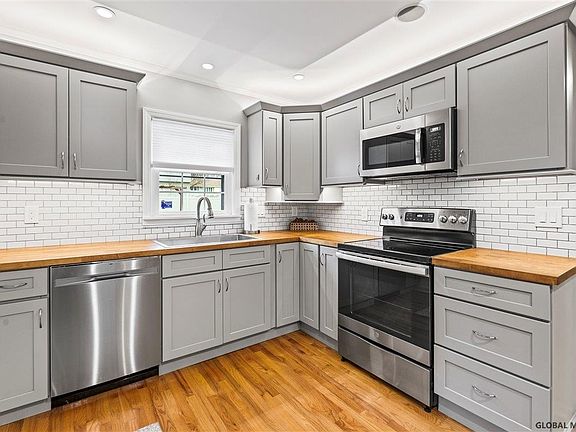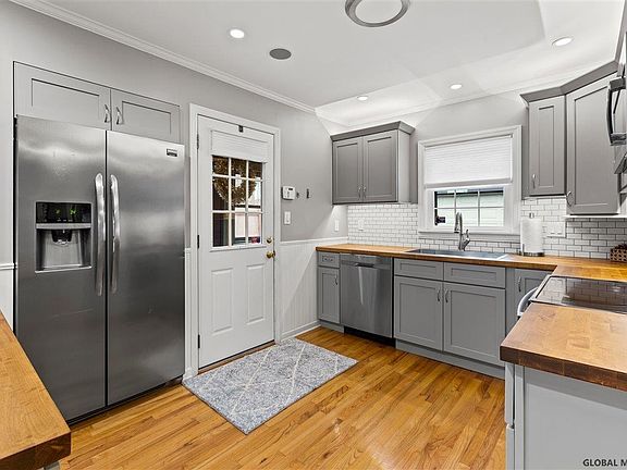 HOUSE BEAUTIFUL! Simply Elegant ~ Sun drenched, warm, inviting spaces await you in this Immaculate Cape Cod Home. Updated, modern spaces begin in the gorgeous new kitchen, all newly applianced, unique butcher block counters, breakfast bar and adjoining dining area. Family room w/hardwood floors and a toasty wood burning fireplace. First floor stellar laundry or media room. Up on the second story you'll find two additional nicely sized bedrooms, with generous closets and hardwoods. Bright new full bath there too! Surround sound system, security system and a Nest. Outdoors you'll find a deck w/television, a landscaped private yard and an oversized garage on a generous lot. Close in proximity to Interstates, Shops, Hospitals and eateries. Unpack your bags & relax~these sellers did it all!