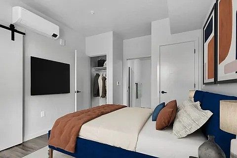- Exterior features: AC/Heating, Bicycle storage, Expansive Windows with Roller Shades, Heating: Electric, High-speed Internet Ready, Lawn, One Year Lease, Online Maintenance Portal, Online Rent Payment, Paid Parking option or Free Street Parking, Pet Relief Area, Quartz Countertops, Stainless Steel Appliances, View Type: City, Walking Closets