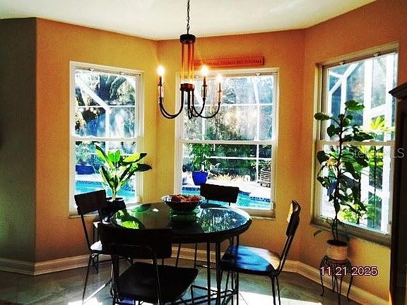 This is an exceptional opportunity to own an amazing residence in the highly sought-after gated WOODBERRY development. There are 6 spacious bedrooms including two master suites, 3 full bathrooms and a half bath. This extraordinary property boasts over 3,674 square feet of living space with an attached 2-car garage, an enchanting screen enclosed salt water pool and spill over spa. An ideal setup for anyone working from home too. The home is strategically positioned on a on a cul-de-sac with a sizable manicured landscaped lot. The plot backs up to a wooded preservation area – no rear neighbors! The home shows like a model home… kitchen, bathrooms, flooring, large 2-person master shower, fabulous master closet, new upgraded windows are only a few of the noteworthy highlights. Truly, too beautiful to put into words. Extravagance everywhere you look – nothing to do except move in. This home has it all. Prepare to be astounded!