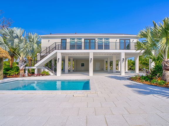 Experience the best of waterfront living in this brand-new home on Lower Sugarloaf Key. Thoughtfully designed and meticulously built, this 3-bedroom, 2.5-bath residence offers 2,288 square feet of modern coastal comfort. Situated on an expansive 16,445-square-foot lot, the property features a private seawall for direct boating access and a sparkling pool perfect for relaxing after a day on the water. The home's elevated design provides a generous covered area beneath, ideal for parking multiple vehicles, storing watercraft, or hosting outdoor gatherings. Inside, the open-concept layout seamlessly connects the living, dining, and kitchen spaces, all oriented to capture natural light and water views. The primary suite is a serene retreat with a spa-inspired bath, while two additional bedrooms offer flexibility for guests or family. Located just minutes from Key West yet tucked away in the quiet beauty of Lower Sugarloaf, this lushly landscaped home is an exceptional opportunity to enjoy the Florida Keys lifestyle.
