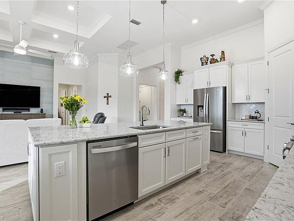 Welcome to luxury living in one of Estero’s most sought-after resort communities—The Place at Corkscrew. This immaculate 4-bedroom plus den, 3-bath home with a 3-car garage perfectly blends elegance, comfort, and function—all just steps from world-class amenities that feel like you’re living at a 5-star resort. Inside, soaring raised and coffered ceilings create an airy feel, complemented by designer lighting, custom paint, and porcelain tile flooring throughout. The chef’s kitchen features stainless steel appliances, GAS cooktop, quartz countertops, extended island with additional cabinetry, and high-level dovetail soft-close cabinetry crowned with molding. The primary suite showcases a new oversized tile walk-in shower, while every corner of this home radiates pride of ownership—from custom wallpaper and window treatments to designer storage upgrades and soft-close drawers. Retreat to your private lanai with a custom pool, electric hurricane-rated screens, and freshly sealed tile and driveway. Whole home generator powers the entire home for peace of mind. Other updates include a new high-efficiency Gulf Stream pool heater (2024), landscape lighting with timer, river rock beds with concrete curbing, and plantation shutters throughout. Residents of The Place at Corkscrew enjoy a true Florida lifestyle with a resort-style pool featuring a 100-foot waterslide, indoor restaurant, bourbon bar, café, outdoor bar, state-of-the-art fitness center, movement studio, tennis, pickleball, basketball, bocce, playground, dog park, spa services, and even Childcare for families. This is more than a home—it’s the Florida Lifestyle done right!