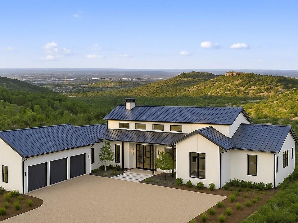 This conceptual 3,700 sf to-be-built residence presents a rare opportunity to create a luxury Hill Country retreat on 10.1 acres overlooking a private canyon with distant views of Lake Travis. Secluded and serene, the property combines natural beauty with the flexibility of a customizable build, including an additional potential building site near the home as well as other possible sites across the canyon. The conceptual plan spans approximately 3,700 square feet and features four spacious bedrooms, each with its own en-suite bath, plus a dedicated full pool bath with exterior access. Designed with views in mind, the open-concept kitchen, dining, and living space flows seamlessly, with expansive windows that frame the property’s stunning backdrop. The owner’s suite is thoughtfully oriented to capture sweeping canyon and lake views, complete with a spa-inspired bath and an expansive walk-in closet. A versatile flex space with a built-in bar offers additional living and entertaining options, while a three-car garage provides ample storage and functionality. Every detail of this design prioritizes natural light, flow, and connection to the outdoors, creating a home that is both elegant and livable. Equally impressive is the incredible outdoor living area, designed to make the most of the home’s views. A spacious covered terrace provides room for relaxation and entertaining, while a fully appointed summer kitchen and dedicated al fresco dining space allow you to enjoy meals and gatherings with a spectacular canyon and lake backdrop. Note: This home is shown as a conceptual design and can be customized to your lifestyle. Final pricing will vary depending on finishes and build-out level. Site prep, utilities, and pool are not included. Be sure to confirm all building details with the local jurisdiction.