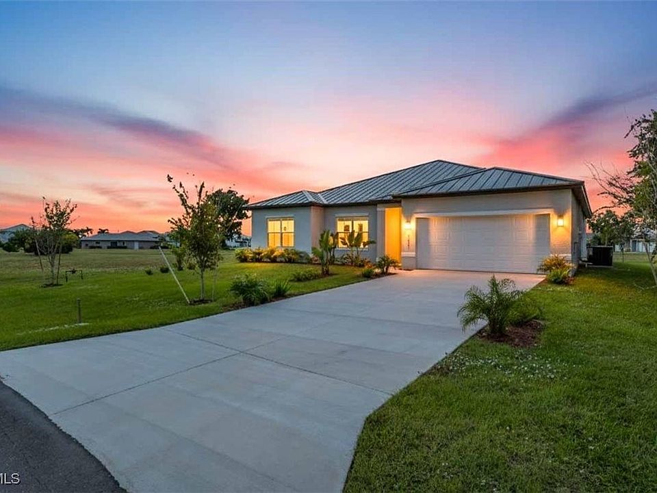 One or more photo(s) has been virtually staged. Located near Burnt Store Lakes on a quiet street, this newly built 2025 home offers 4 bedrooms, 3 baths, and a 2-car garage across 2,092 sq. ft. of modern living. Ideally situated less than 10 minutes from I-75, it provides convenient access to shopping, dining, and nearby destinations. The split bedroom floor plan ensures privacy, featuring one guest bedroom with an en-suite bath and a secondary bathroom with dual sinks. The owner’s suite includes tray ceilings, two separate vanities, and his-and-her walk-in closets. The chef’s kitchen highlights Samsung stainless steel appliances, quartz countertops, a center island, and soft-close drawers and cabinets, while vinyl plank flooring flows throughout the main living areas and tile flooring adds a stylish touch to all bathrooms. Built with hurricane impact windows and sliders, this home combines modern style with peace of mind. Located in an X flood zone, no flood insurance is required. The Burnt Store Lakes neighborhood also offers kayak access, perfect for those who love to explore the water and enjoy the Florida lifestyle. The property features a spacious backyard with the potential to add your own private pool and is landscaped with irrigation for easy maintenance. Seller is offering a $10,000 credit toward buyer’s closing costs or an interest-rate buydown—an exceptional opportunity!