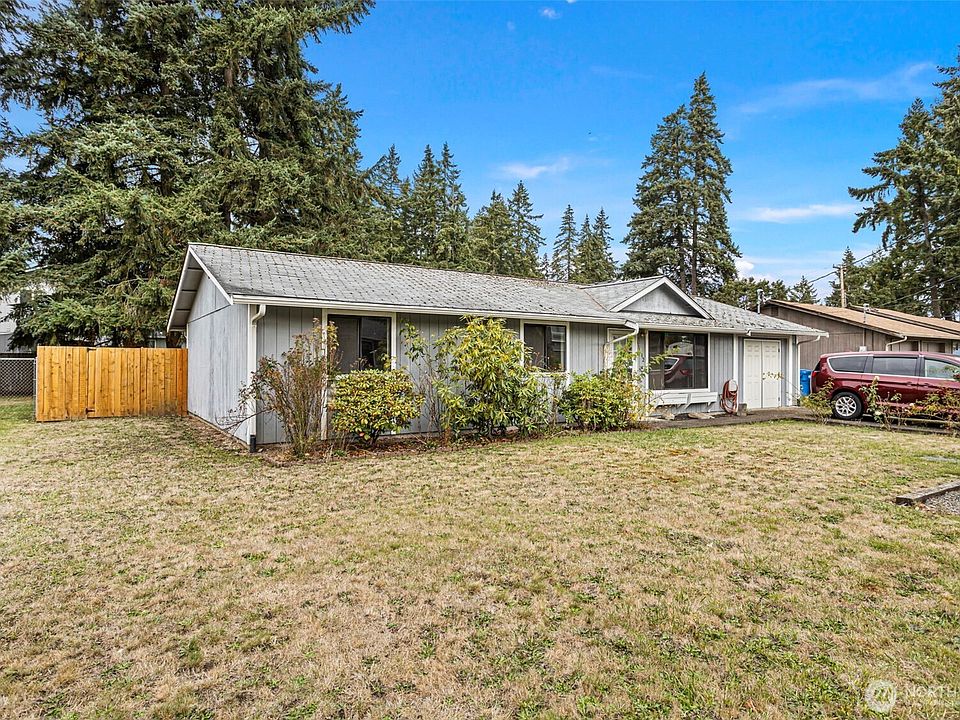 Aggressively priced rambler offering unbeatable convenience to JBLM, shopping, and major freeways. This 3-bedroom single-level home is the perfect opportunity to build instant equity with your personal updates and design touches. The garage has been converted into a versatile workshop, ideal for projects, hobbies, or extra storage. Enjoy a spacious, fully fenced backyard ready for pets, play, gardens, or outdoor entertaining. With solid bones and endless potential, this home is perfect for investors or first-time buyers seeking value, location, and opportunity — don’t miss it!