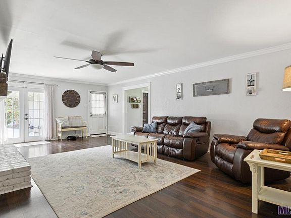 Country living in the city! Enjoy the appeal of a quiet rural setting just around the corner from all of the shops, restaurants and amenities that East Baton Rouge has to offer. This spacious home has rich laminate floors throughout the living area and all 3 bedrooms. No carpet here! The living room with a wood burning fireplace and views of the backyard is a perfect place to unwind after a long day or entertain on game day. A galley style kitchen that opens to the breakfast nook and formal dining room offers a modern farmhouse design with brick floors, granite counters and shiplap ceiling. The 1.26 acre lot is in zone X, has never flooded and features a 20 x 30 metal workshop complete with a loft and automatic door opener for the 12 x 12 roll up door! Need a place to store your RV or a great covered outdoor space for a crawfish boil? There is also a 16 x 30 metal awning next to the workshop. The large backyard has a relaxing fire pit area and a beautiful new playground that will remain. A rare find that won't last long!