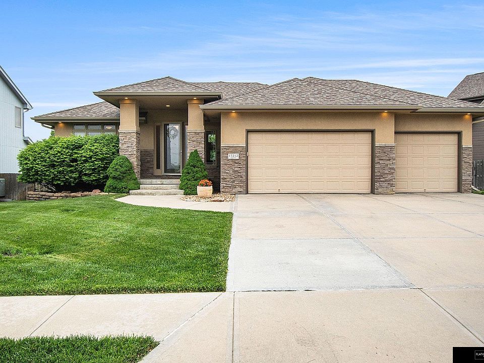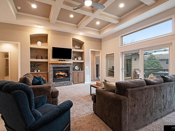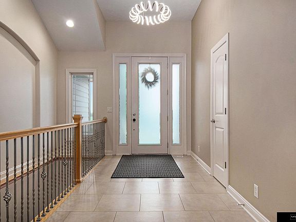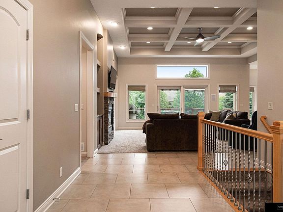 Open house 1-3 pm May 20th and 21st. Showings start 5-20. Amazing custom home with incredible views of neighboring Tiburon golf course. Ceramic tile entryway and stunning 12ft ceilings in living room. Gas fireplace with stone surround & floor-to-ceiling built-ins with cabinetry & granite countertops. Gourmet kitchen has quarter sawn oak cabinets with pull-outs, granite countertops, large island, custom backsplash & hardwood floors.Main floor laundry room has utility sink & drop zone with bench & cabinetry for storage. Rear deck accessed from living room and master bedroom. Master suite with 12 ft tall ceiling, dual sinks, tiled shower, whirlpool tub, and walk-in closet. All bathrooms have raised height quarter sawn oak vanities with granite countertops.Two additional bedrooms in finished basement share 3/4 bath. Large family room and 2 storage rooms. Garage is heated & insulated. Fully fenced yard with sprinkler system. Home has radon system, water softener and water filtration system.