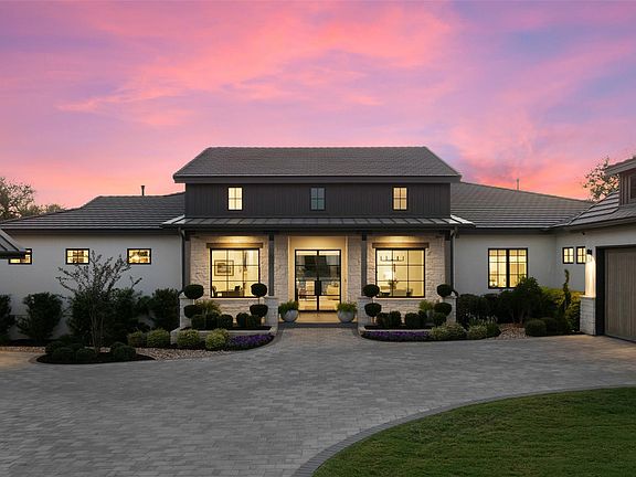 Welcome to 17213 Morning Grove Lane, a beautifully executed single-story custom home built by Eppright Homes in 2023 and situated on a flat, oak-studded lot in the gated community, Madrone Canyon. With thoughtful architecture and timeless Hill Country appeal, this home pairs soft modern finishes with warm natural textures highlighted by wide-plank wood floors, vaulted ceilings with beams, designer lighting, and abundant natural light throughout. An open-concept layout connects the spacious living room, dining area, and gourmet kitchen, where professional-grade appliances and a generous island anchor the heart of the home. Designed for both comfort and flexibility, the home includes four spacious bedrooms each with its own en-suite bath, plus two separate offices, a dedicated pool bath, and a well-appointed four-car garage. The primary suite is a private retreat, featuring serene backyard views, a spa-style bath with a deep soaking tub, oversized walk-in shower, dual vanities, and a beautifully customized closet. Every detail inside has been intentionally selected, from the ambient lighting and wallpaper accents to the automated window shades and bespoke hardware. Out back, a resort-style pool and spa with a negative edge and waterfall feature become the centerpiece of the landscape, surrounded by a large covered patio, raised garden beds, and open lawn shaded by mature oaks. With its calm, elegant style and a layout that blends functionality with ease, 17213 Morning Grove Lane offers refined Hill Country living just minutes from everyday conveniences in both Bee Cave and Lakeway along with top-rated Lake Travis schools.