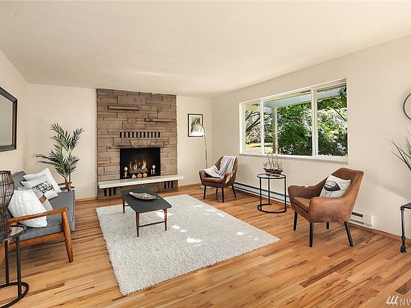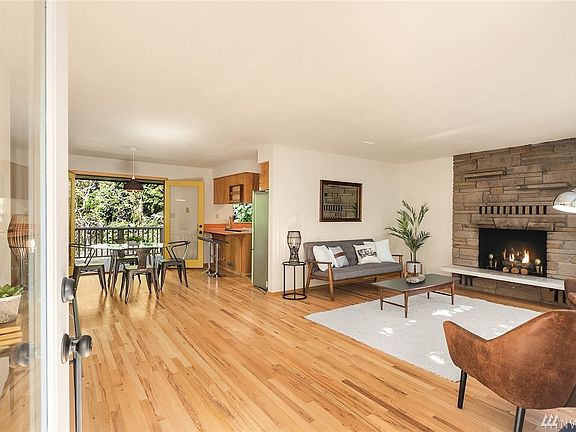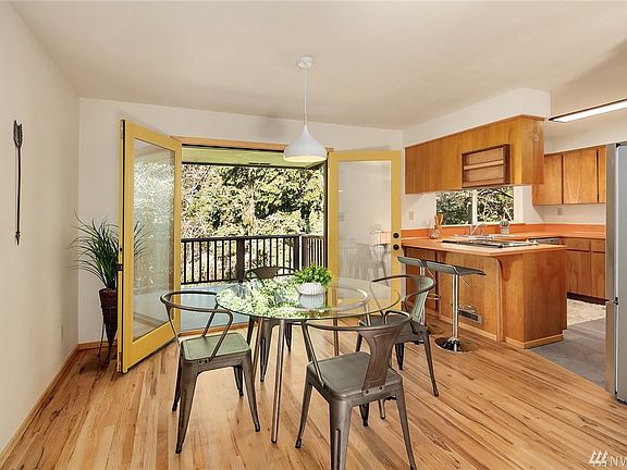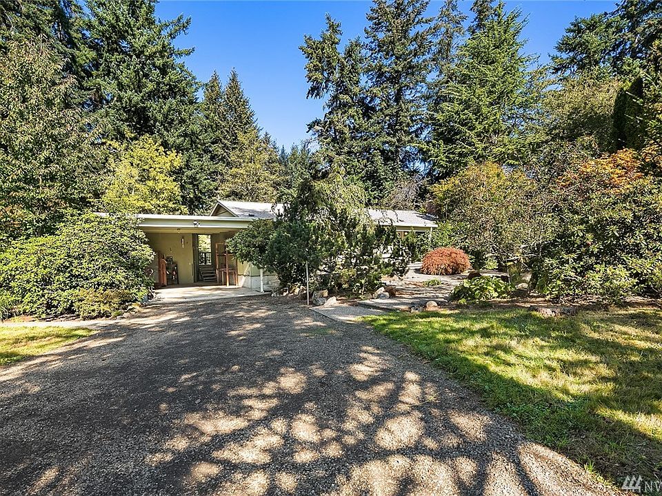 Privacy and in-town convenience. Three minutes from Vashon town on a shy acre with woods on two sides. Updated mid-century modern with refinished hardwood floors, new appliances, newly painted throughout. Daylight basement offers a second living space with a kitchenette, bedroom, bath and tons of storage space. Extensive landscaping with many mature rhododendrons and a charming Koi pond and waterfall. Carport with separate shop space. Outbuildings include a playhouse/office. High-speed internet.
