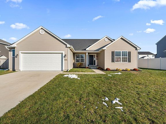 Welcome home! Located in the coveted Heritage Falls community with quick access to both Route 41 and IL-394, this charming, nearly new ranch with a finished basement is the one you've been waiting for! Built in 2020 and lovingly updated and maintained, this home is second to none. Upon entry, you're greeted with an open-concept layout that flows into the oversized living room, featuring an abundance of windows that fill the space with natural light. The living room seamlessly connects to the eat-in kitchen and dining area, adorned with bar-top seating, an island, and a waterfall sink complete with a glass washer. Step out onto the large rear deck and enjoy your spacious, partially fenced backyard, complete with a large storage shed. The formal dining room is adjacent to the kitchen and has been tastefully painted, featuring luxury vinyl plank flooring that is less than a year old. The thoughtful split floorplan ensures privacy and convenience, with two bedrooms, a full bathroom, and an oversized laundry room on one side, while the luxurious primary suite is located on the other- complete with a walk-in closet and en-suite bathroom. Downstairs, the finished basement offers an additional oversized living space currently set up as a game room, a three-quarter bathroom with a custom-tiled shower, and a utility/storage room. The heated, oversized 2.5 car garage is perfect for car enthusiasts and hobbyists alike! This home boasts new vinyl plank flooring in the dining room (2022), a newly finished basement (2024), a 10x12 shed (2022), fresh paint (2025), a new deck (2024), a new crawlspace vapor barrier (2024), and a new basement bathroom (2025). Don't miss your chance to call this house home!