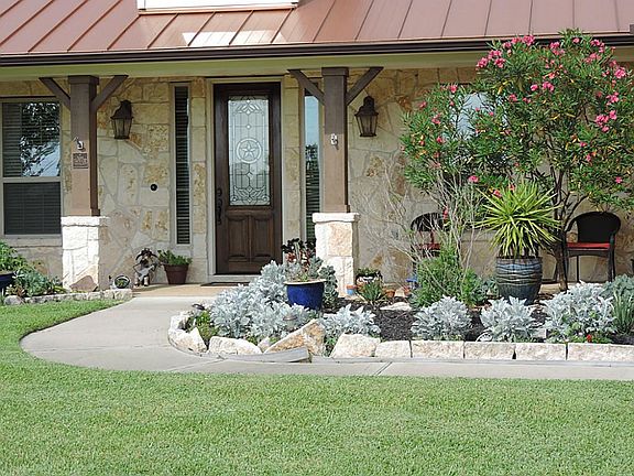 Beautiful custom-built ''Texas Hill Country'' style home on 2.74 acres. 40' x 30' barn w/concrete slab;insulation;electricity w/Clopay garage door that matches house. Gorgeous stone arched entryway & matching fireplace. Large, open kitchen has S.S. appliances, full-extension drawers & huge walk-in pantry. Mstr closet has built-in dresser. Tilt-in windows throughout house. Gamerm w/bath could be 4th bedroom. Water filt. system. Extded patio is great for relaxing on summer evenings.