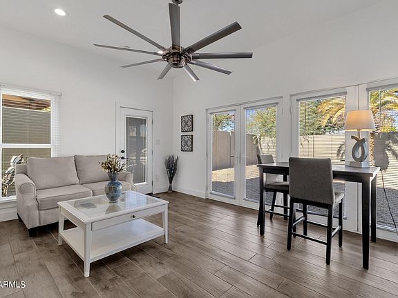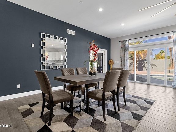 This unique and stunning property began as a builder's home and has been updated to be a forever home, making an incredible abode for a lucky buyer! Featuring 4 beds and 4 baths and 3074sqft, this single-story home was extensively remodeled about 5 years ago with fire breaks in the walls. Newly updated electric completed 2024. New roof to be installed Feb 2024. The 2-car garage offers canned lights, additional outlets and updated flooring. Take note of the 16' stacked stone turret with Alder ceiling & custom chandelier. Venture inside and discover beautiful porcelain flooring in the main living areas and wood floors in the bedrooms. Fall in love with the open concept kitchen boasting stainless steel appliances, custom tiled backsplash, Quartz counters & center.. island. Take comfort in the 3-5-year-old AC units and the 2-3-year-old water heaters. The primary suite is a true oasis from the bustle of life featuring an ensuite bath with separate jetted tub, custom tile, glass shower, dual sinks, tons of natural light and a huge walk-in closet with storage solutions. The bonus "casita" space is the perfect guest dwelling or home office with dual door entry into the main house with a separate exit and its own bathroom. Picture yourself soaking in the sun in the huge, flat backyard which offers turf, palm trees, a pergola and paver patio. Enjoy the sparkling diving pool offering new Pebble Tec and new pool equipment including new sand filter (2016). Everyone is sure to find something to adore about this lovely, upgraded home!