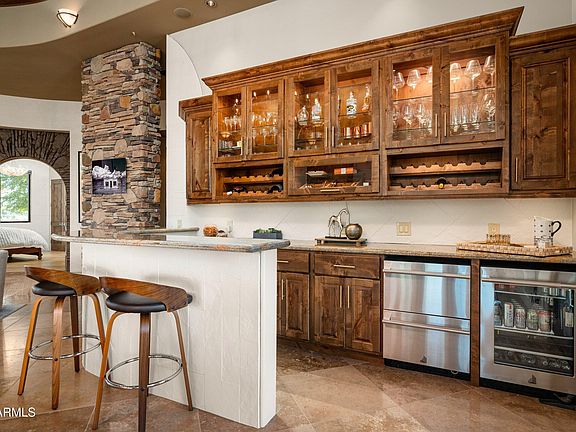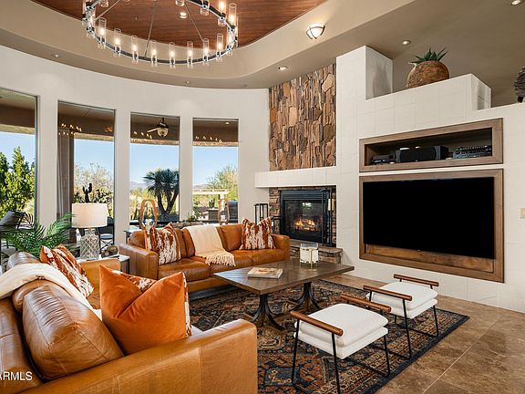BEAUTIFULLY REMODELED CUSTOM HOME RECENTLY UPDATED WITH A FRESH LOOK CONTEMPORARY REDESIGN. This welcoming home opens to a vibrant entry and spacious great room with custom bar designed for entertaining friends & family. The interior warmth continues in the kitchen with mountain views and great natural light. Spectacular floor to ceiling windows showcases the brand-new pool and oasis-style landscaping transformation featuring an expansive covered patio, BBQ, firepit, fountain & outdoor shower. Main home features guest bedroom, theater room, full office and gorgeous dining room. Separate guest casita features 500 sq ft of living space including its own laundry for extended stays. This home seamlessly incorporates modern design elements with timeless southwest architecture.