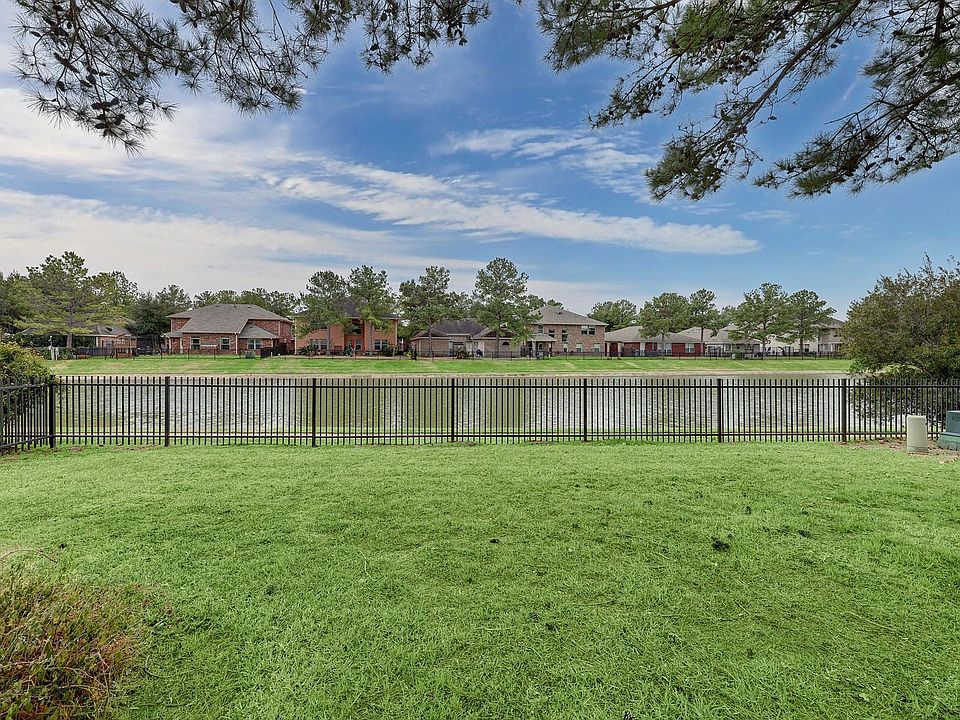 - WAKE UP BY WATER - THIS IS A BEAUTIFUL HOME ON THE LAKE with a flagstone patio- visualize morning coffee or a family gathering - awesome view; Great location close to area pocket Pool, golf course, Park & Splash Pad in Gated Master Planned Community of Stone Gate. Cul-de-sac street. New paint with laminated hardwood floor throughout (no carpet). Covered patio & even a small Porch upfront. Kitchen with gas appliances & breakfast bar. Formal Dining. Cy-Fair ISD. MUST SEE!