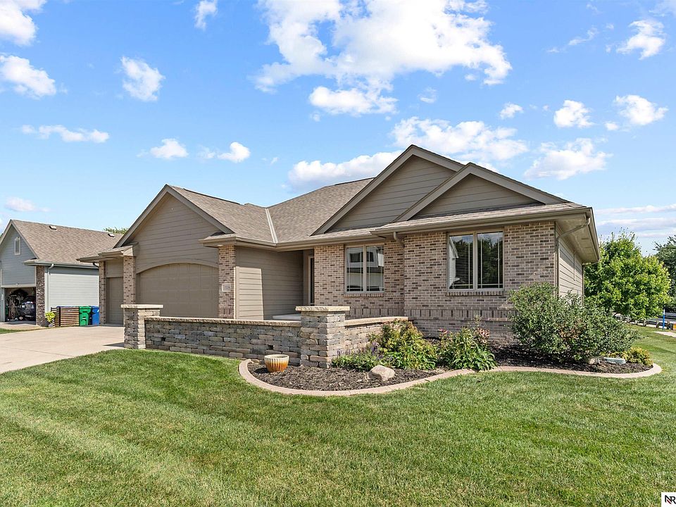 Contract Pending. On the market for backup offers. This custom-built ranch walkout is perfectly situated on a private cul-de-sac, offering views of a large open yard with mature trees. The beautiful paver courtyard and manicured landscaping provide a welcoming first impression. Inside, the open and inviting floor plan is highlighted by vaulted ceilings and an abundance of natural light. The kitchen features elegant cherry-stained cabinets, a large center island with a raised snack bar, and a charming decorative accent wall. Enjoy casual meals in the bright dinette with a bay window, which opens directly to a covered deck. The primary suite is a true sanctuary, complete with a spacious walk-in closet and a luxurious bathroom featuring double sinks and a relaxing whirlpool tub. Convenience is key with a main-floor laundry room with wash sink. The lower level offers a fully-finished Rec room with pool table, 3rd conforming bedroom, bath and walkout to the beautiful yard. This home