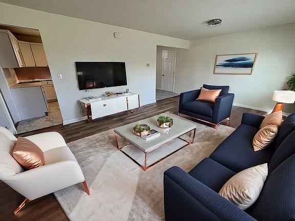 - Features: Kitchen (Eating Area-Table Space, SolidSurfaceCounter, Updated Kitchen), Flooring (Vinyl), Window Treatments (Blinds)