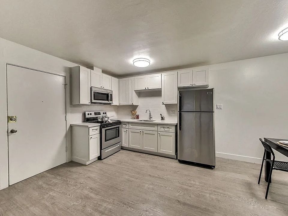 Remodeled kitchensStainless steel appliancesGranite countertopsWooden cabinetsPristine hardwood flooring