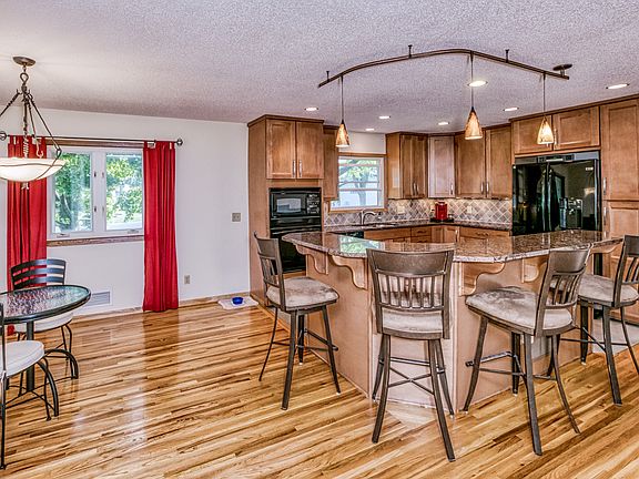 Well kept split foyer with update after update. "Knock out" granite kitchen open to eating and living area. 3 season porch over looking huge manicured backyard with gardens, shed and patio. 4 beds, 2 baths. Gutters/sprinkler system for easy maintenance. Newer windows/siding/roof (2011). Wood burning FP in lower level. New Air conditioner to be installed on July 16th. Walk to parks, easy access to freeways and MOA, Outlet Mall and much more. Rare opportunity to live in Eagan at a fair price.