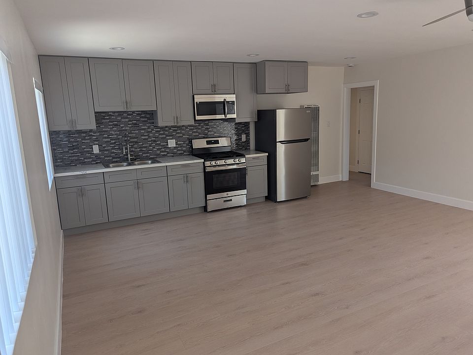We have available a beautiful large brand new, two bedroom one bathroom apartment. Everything in this apartment is completely new. Recessed lighting throughout, new gorgeous kitchen and granite counter top, untouched amazing bathroom, beautiful flooring throughout. This apartment is a must see! Thank you.
