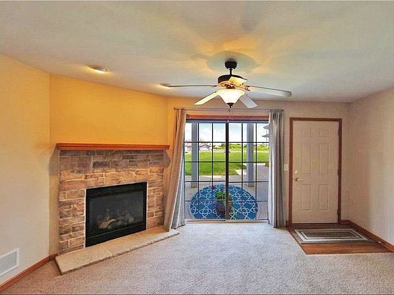 Hard to find first floor condo offering 2 bedroom, 2 baths, gas fireplace with blower fan, 6 panel doors throughout, raised panel oak cabinetry, range/oven, refrigerator, large capacity washer/dryer, microwave hood/fan combo and dishwasher. Attached 2 car garage with key pad entry. Super clean and move in ready!